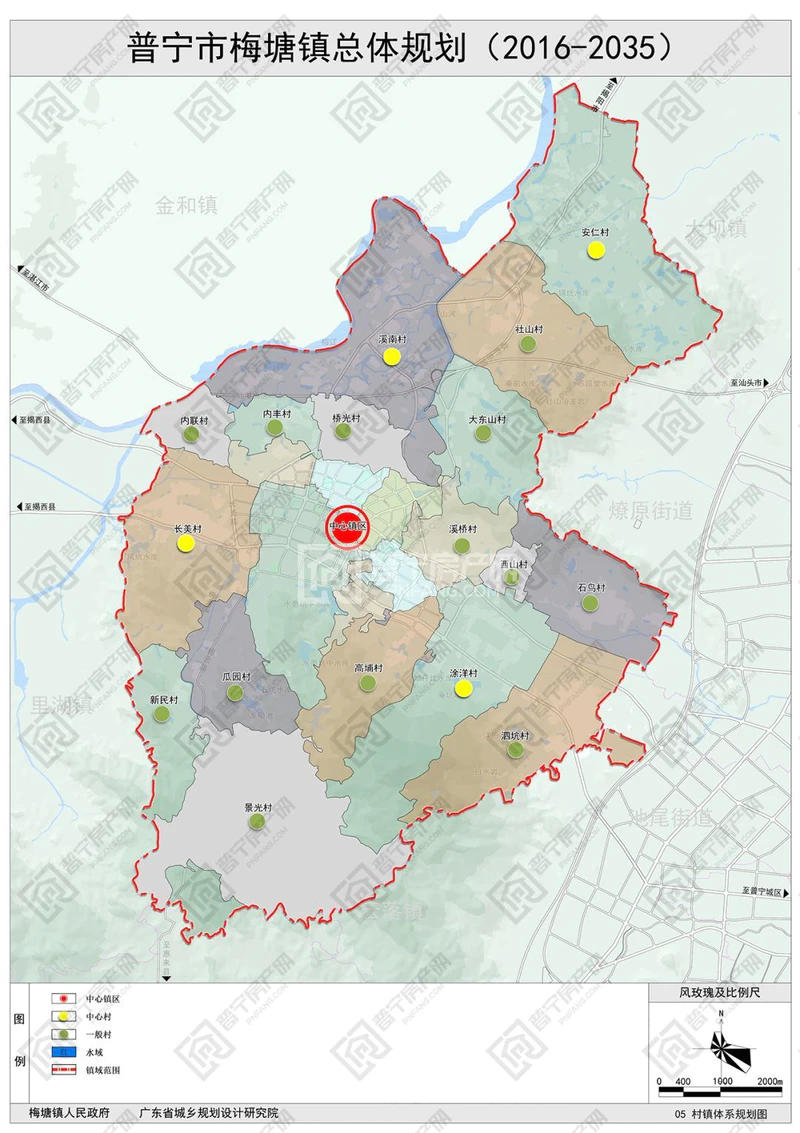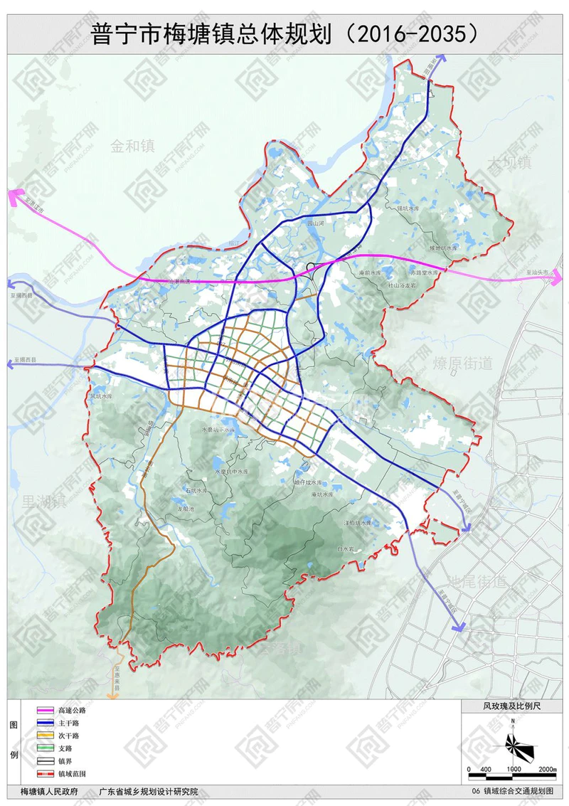 一、规划范围与期限 1、本规划范围分为镇域(规划区)、镇区两个层次。 (1)镇域范围(即规划区):为梅塘镇行政边界,75.58平方公里,包括23个行政村和1个社区居委会; (2)中心镇区范围:西至规划长美路,东至规划涂洋路,北至引榕溪,南至水磨坑下水库,共7.4平方公里。 2、规划期限为2016-2035年。其中:近期为2016-2020年,远期为2021-2035年。 二、发展目标与战略 1、总体目标:依托良好的生态资源,结合新进的对外交通优势,通过升级做大做强主导产业、逐步提升镇区职能、稳步推进城乡统筹,将梅塘镇建设成为新型工业城镇以及普宁西部的交通中转站。 2、城镇性质:普宁市西部重要城镇,以塑料、食品、服装纺织等为主导的新型工业城镇。 3、城镇发展规模: (1)规划梅塘镇镇域近期2020年常住人口为15.6万人,城镇化率为30%;远期2035年常住总人口为18.6万人,城镇化率为60%; (2)规划梅塘镇镇区近期2020年常住人口为4.5万人,城镇建设用地规模为187公顷;远期2035年常住人口为6.6万人,城镇建设用地规模为648.16公顷,人均98㎡。 4、发展战略: (1)区域统筹,加强同里湖镇、大坝镇以及中心城区在产业、交通、生态等方面的合作协调,实现区域共同发展,提升普宁市西部地区的整体发展水平。 (2)产业发展,以市场需求为导向,加快调整农业结构、提高农产品质量安全水平,构建展销一体化平台,扩大市场范围,拓展农民增收空间。同时加强中低产田改造,加快农业科技进步,强化生态环境保护和资源要素节约利用,提高农业综合生产能力; 加速服装等支柱产业的聚集,通过构建产业园来实现工业的集约化、规模化、高效化发展。同时发展金融商贸、科技研发、工业设计、技术服务、专业培训以及会展等现代服务业。第二产业和第三产业的融合,为新一轮的产业升级创造良好基础。 (3)城乡统筹,优化城市空间。构建镇服务集聚中心,提升服务水平和规模,强化镇区作为镇域中心的地位,加强基础设施和服务配套设施的建设,带动城市空间的优化升级。 三、镇村体系规划 1、产业发展布局:规划形成“城镇综合服务区”、“休闲农业观光区”、“自然山水保育区”、“特色民宿服务区” 、“风景名胜观光区”的镇域五片区特色产业格局。 2、镇村等级结构:规划形成中心镇区、中心村、基层村的三级结构,其中中心村包括长美村、涂洋村、溪南村、安仁村。 3、镇域道路交通规划:镇域内形成“三横一纵“的主干路网格局,加强梅塘镇与普宁中心城区以及周边城镇联系。“三横”为原省道238、引榕南路和汕湛高速路;“一纵”为县道097。 1、空间结构:镇区用地布局结构为“两心、三轴、五组团”。 两心:综合服务主中心。作为全镇的行政、商业、文化、餐饮、娱乐、体育、卫生等公共设施服务中心。综合服务次中心。为县道097与省道238交汇处的综合服务中心,在原基础上增加文化、娱乐、购物等公共服务设施。 三轴:城镇发展主轴。指沿着省道238两侧形成城市综合发展链,连接两个综合服务核心。城镇发展次轴。指一条沿县道097两侧和一条沿着政府东路两侧形成城市综合发展次链。 五组团:城镇综合服务组团、电子商务商贸组团、老城综合提升组团、现代生态宜居组团及特色产业发展组团。 2、用地布局:规划期末安排城镇建设用地648.16公顷,人均建设用地约98平方米。其中居住用地24.10公顷,公共管理与公共服务设施用地41.45公顷,商业服务业设施用地82.97公顷,道路与交通设施用地146.28公顷,公用设施用地4.26公顷,工业用地53.02公顷,物流仓储用地6.34公顷,绿地与广场用地64.74公顷。 1、行政办公设施规划:规划行政办公设施用地2.85公顷,规划保持行政办公设施集聚在政府东路与引榕南路交界处。 2、文化设施布局:规划文化设施用地4.07公顷,规划设置1处文化活动中心、1处少年宫和2处文化馆三类文化设施。 3、教育设施布局:规划教育科研用地24.43公顷,其中: (1)高中:规划保留现状梅峰中学。 (2)初中:规划保留现状梅峰初级中学中学,新增两处中学。 (3)小学:规划保留现状远光小学、田丰小学、双湖小学、新光学校、大宅华侨小学,新增四处小学。 4、体育设施布局:规划体育设施用地3.02公顷。 5、医疗卫生设施布局:规划医疗卫生用地2.44公顷,规划保留梅塘卫生院1处,面积为0.51公顷;新增4处社区卫生站,用地面积约1.93公顷。 6、社会福利设施布局:规划社会福利设施用地1.97公顷。新增四处敬老院。 7、文物古迹用地设施布局:规划保留文物古迹用地规模0.41公顷,包括梅峰庵。 8、宗教用地设施布局:规划保留宗教用地规模2.26公顷。 1、规划期限:近期规划年限为2016-2020年。 2、规划规模:至2020年,镇区常住人口规模约为4.5万人,全镇城镇化水平约为50%。城市建设用地规模为1.87平方公里。 3、近期建设内容: (1)新型产业园区的建设。将梅塘镇分散独立的产业集聚起来,从而更好的带动整个镇域经济的发展。 (2)重点打造政府东路东侧高品质居住片区,配套相关服务设施,改善片区形象,打造镇区中心门户。 (3)对县道097沿线商业进行升级和改造,在省道238及县道097交界处打造一处大型商业中心,在镇区综合服务中心打造商业群,带动梅塘镇发展。 (4)重点道路的升级和新建。近期重点建设的道路包括2条主干路:将县道097升级改造为双向六车道,新建连接里湖镇和中心城区的引榕南路。 1、本规划一经批准,由