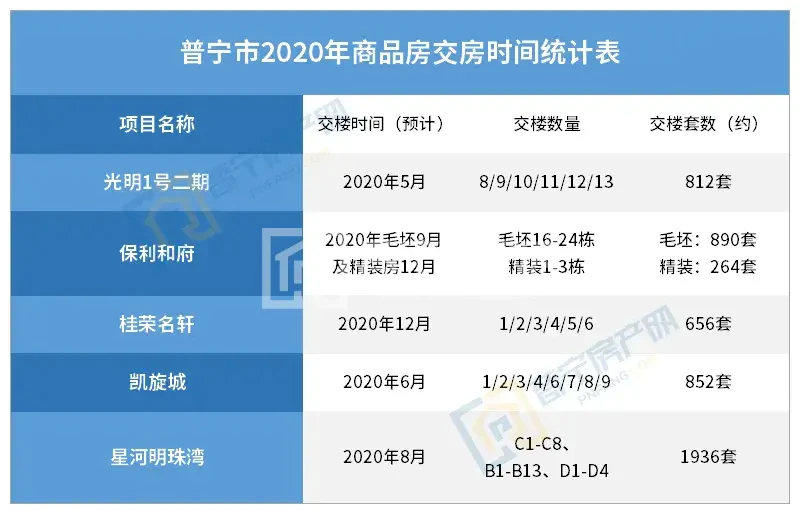 光明1号二期交付8-13栋,交楼套数共约812套,建面约196㎡-412㎡,已于2020年5月交楼。