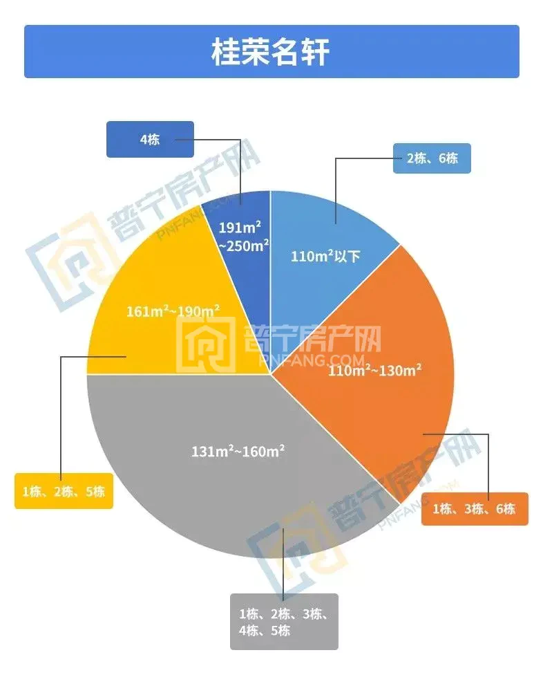 据统计图表明,桂荣名轩户型多集中为建面约131-160㎡。