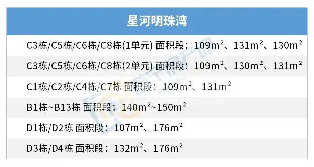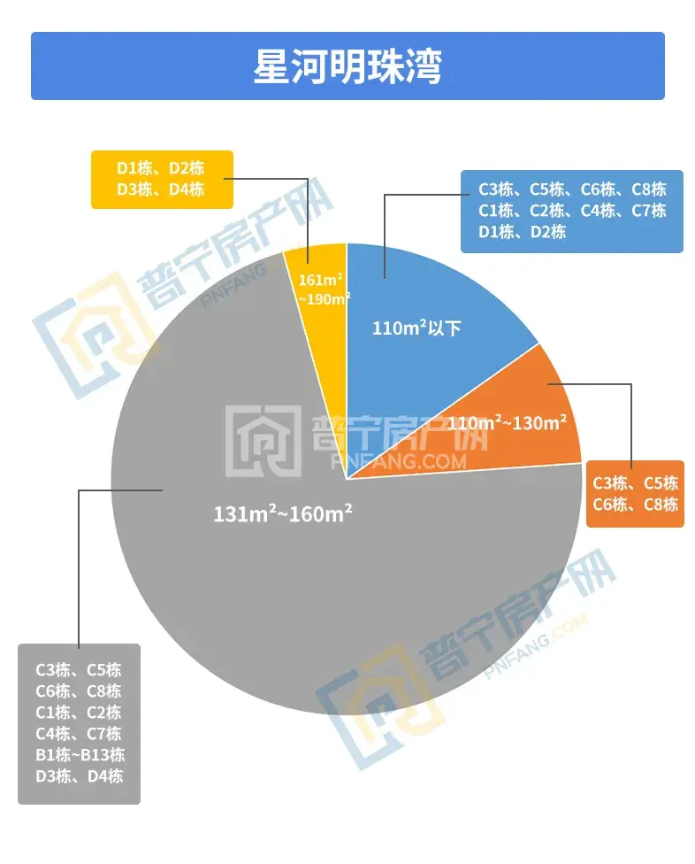 据统计图表明,星河明珠湾户型多集中为建面约131㎡-160㎡。
