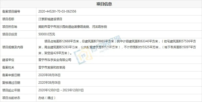 项目历程回顾 2019年1月 2020年1月 2020年6月 PN2020002地块以4505万元的价格被普宁市泓亨实业有限公司拍下,楼面价2548.8元/㎡,将与西侧毗邻地块统一规划建设。 2020年7月 普宁市泓亨实业有限公司建设用地规划许可批前公示。 2020年8月 江景新城建设项目备案通过,总投资50000万元。 航拍图片 期待早日启动建设! 想了解更多楼市详情, 欢迎添加小房君微信, 或底部留言与小房君互动!