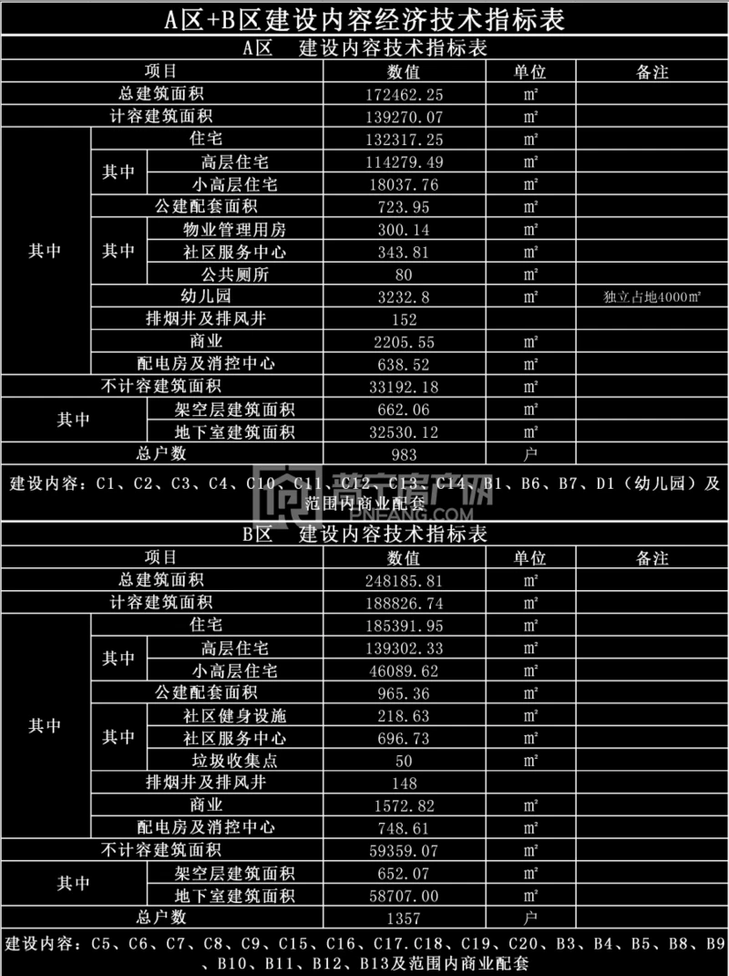 建设规模 A区+B区:32幢10层至33层住宅楼、1幢3层幼儿园、1幢1层配电房、1层地下室,总建筑面积420648.06 ㎡(其中地上329410.94㎡,地下91237.12 ㎡);C区:1幢17层住宅楼,总建筑面积6140㎡;D区:13幢3层至29层住宅楼、1幢1层配电房、1层地下室,总建筑面积49885.68㎡(其中地上37209.68㎡,地下12676 ㎡);E区:1幢7层住宅楼,总建筑面积 2270㎡。