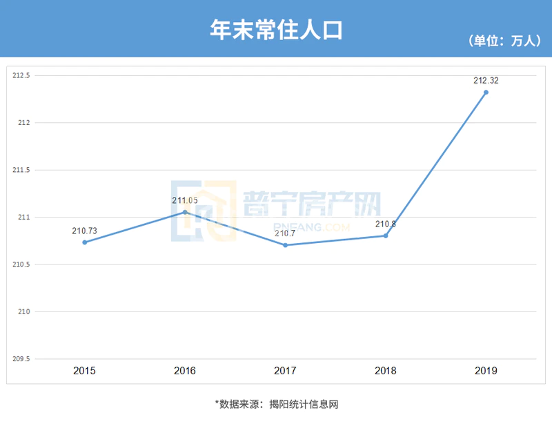都说楼市短期看政策,中期看土地,长期看人口。纵观近五年,普宁市年末户籍人口从整体上看,呈上升趋势,其中不乏非本地户籍人口的流入。户籍人口的上升将是支撑房地产业发展的动力之一,它将拉动房地产市场需求,有效支撑楼市稳健发展。