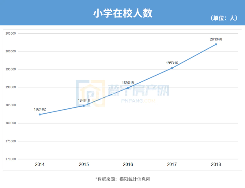近五年,普宁地区小学在校人数几乎是呈直线上升。小学生数量的持续增加,将成为普宁楼市稳中有升的压舱石,同时也将为普宁房地产带来增值的潜力。