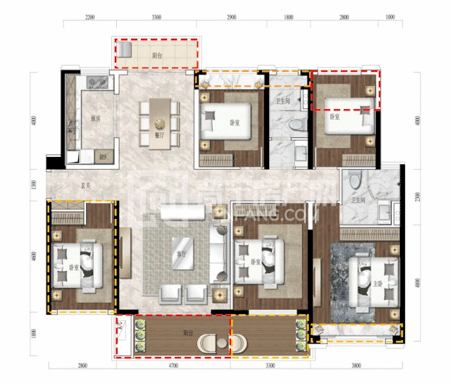 主次卧室均设计美景飘窗