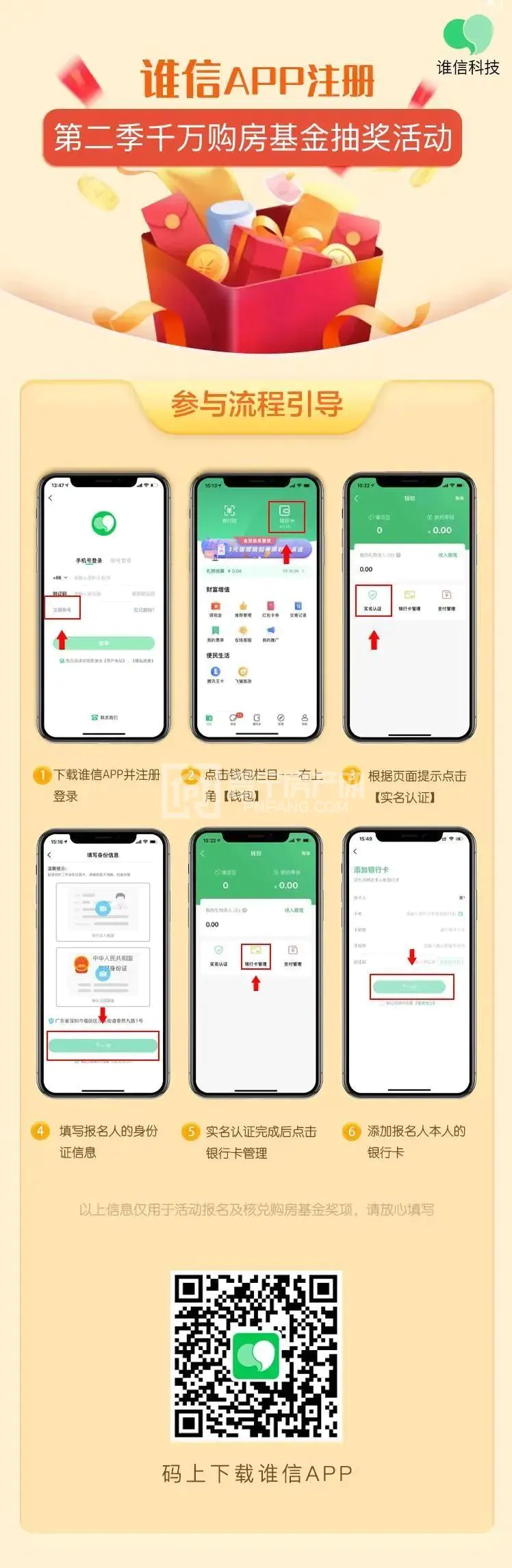 1、本次抽奖活动参与报名需在登记表登记个人信息,并下载“谁信APP”以及转发活动推文及海报;