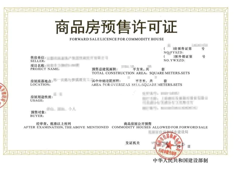 第五是《商品房预售许可证》(市住房城乡建设局核发)