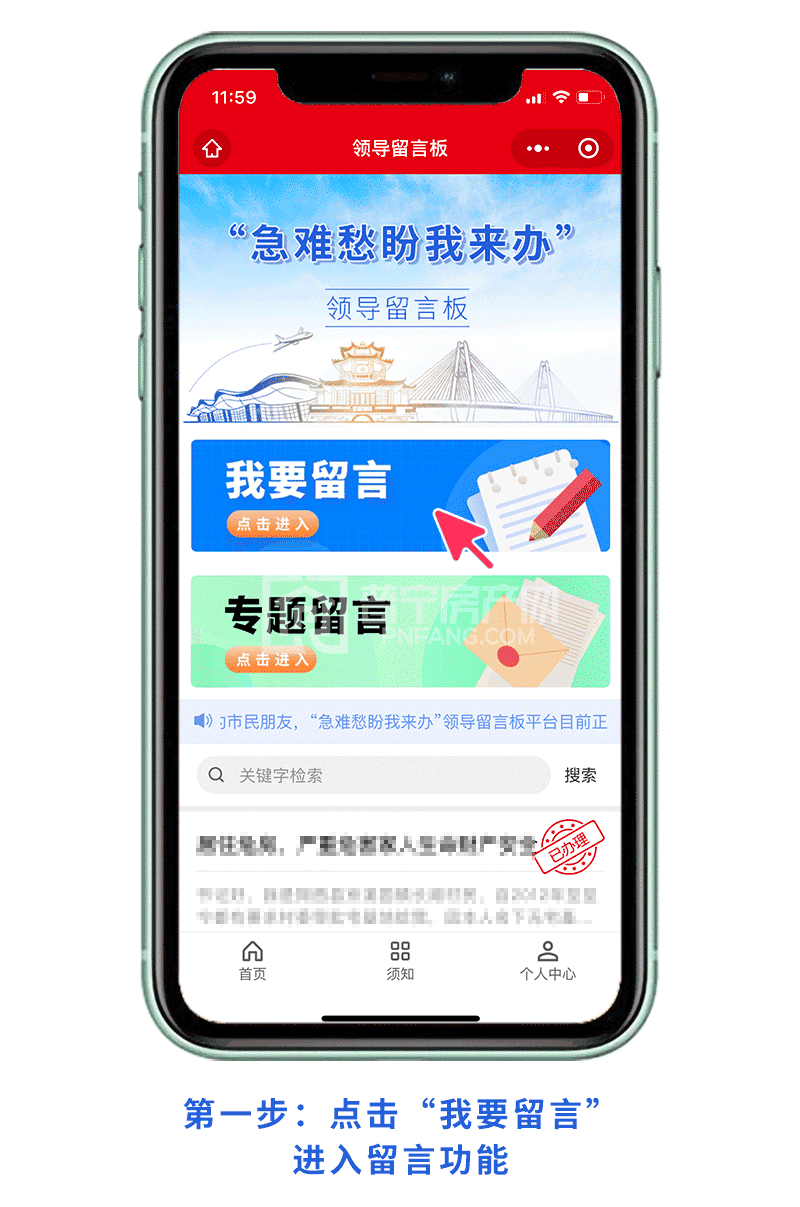 留言完成后,市民可通过底部菜单栏“个人中心-我的留言”查看留言的办理进度以及回复意见。