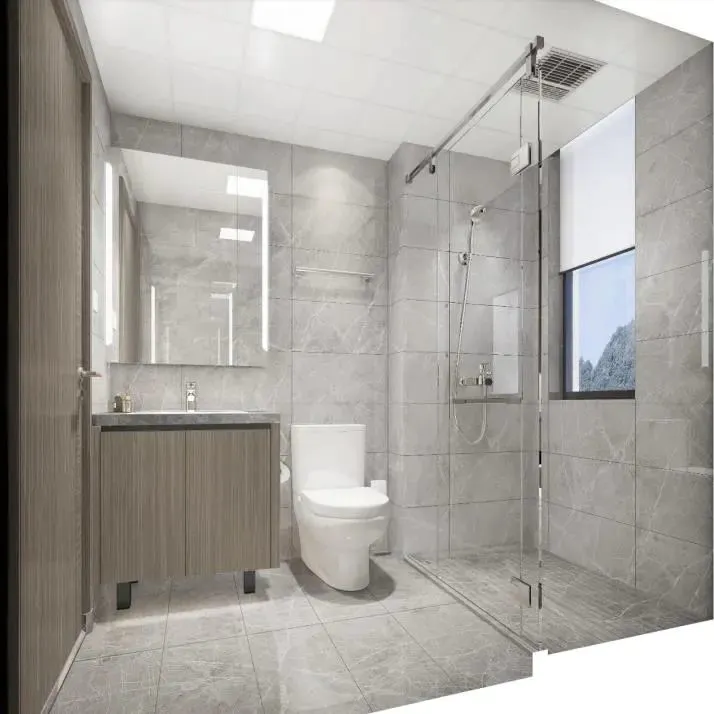 卫生间:配备洁具、玻璃淋浴门、毛巾架、淋浴花洒等。