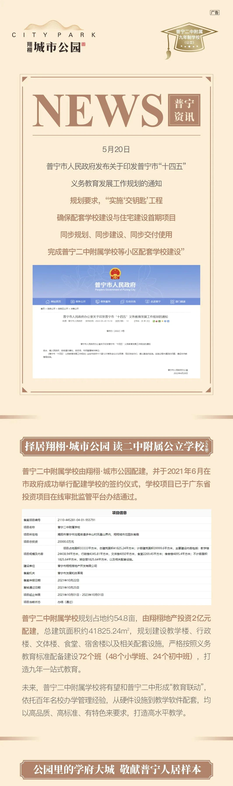普宁“十四五”规划:配建普宁二中附属学校,与项目同步交付使用!