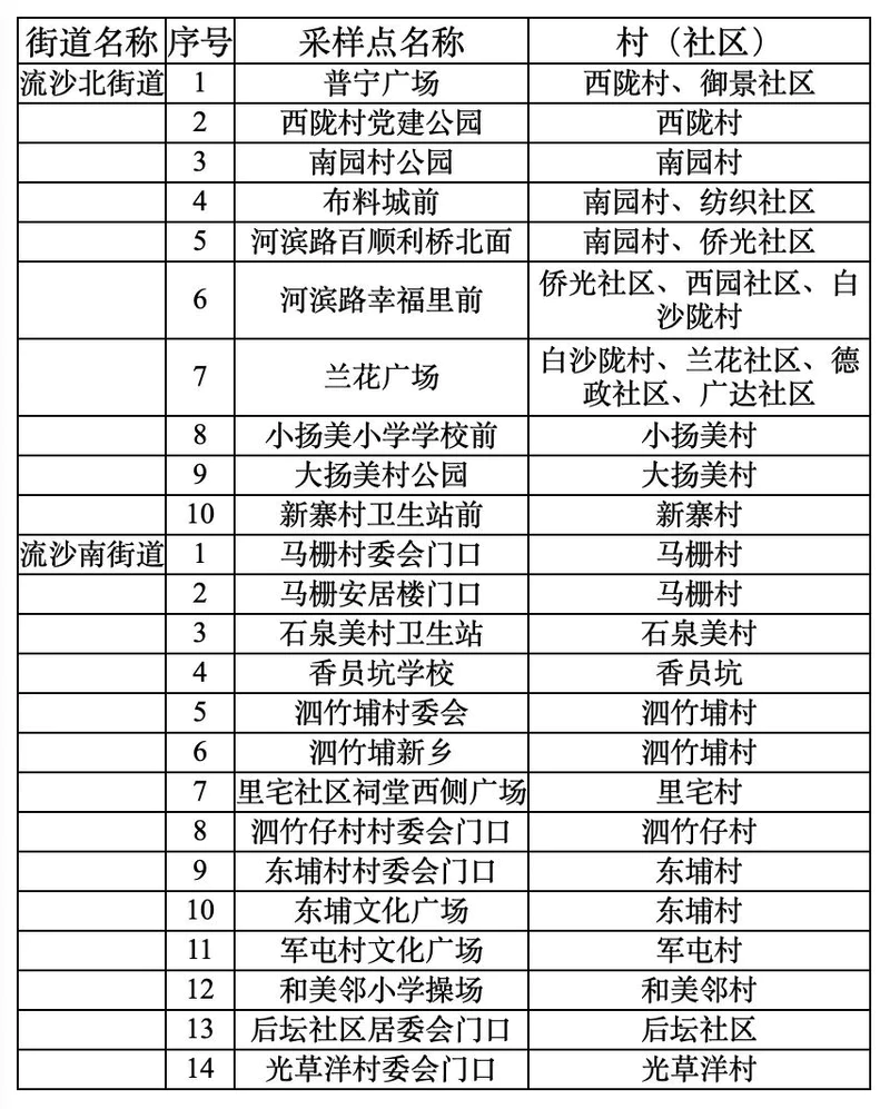 (五)采样点结束时间根据工作需要另行公告。