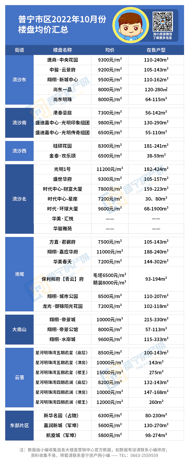 对于购房者而言,买房,房价必须要了解,房价、房贷利率都与购房成本密不可分。目前,普宁的首套房房贷利率在5.1%-5.3%之间,二手房房贷利率最低4.9%,公积金利率也降到了3.1%。历史新低时刻,你的购房计划提上日程了吗?普宁市区各大楼盘最新房价如何呢?小房君统计了10月份普宁各街道各大楼盘最新房价数据,一起来看看吧~