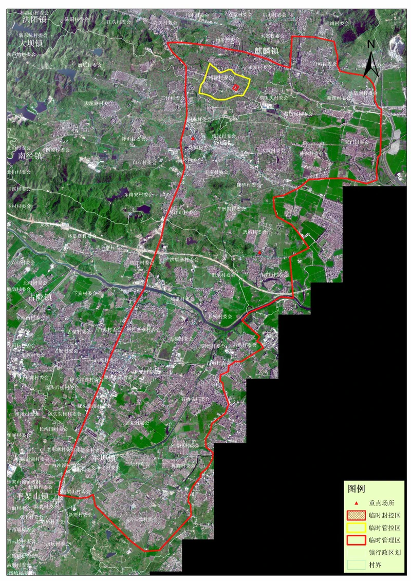 临时管控区:占棉公路麒麟南陇段以西,麒麟溪支流南老段以北,南陇-浮山Y415南新村至水寨村机耕路以东,麒麟溪支流南新段以南。采取“足不出区、错峰取物”等管控措施。