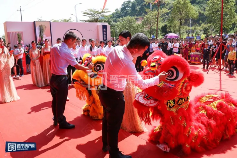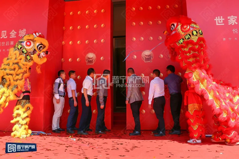 随后在阵阵欢呼的掌声中,进行到了舞狮点睛的环节,被点睛的狮子生龙活虎,象征着吉祥如意,悦府世家红红火火、开盘必定热销。在热闹喜庆的氛围中,迎来了最激动人心的时刻,出席嘉宾和领导共同为悦府世家接待中心剪彩,并推开象征开启的大门,悦府世家接待中心正式开放启用!