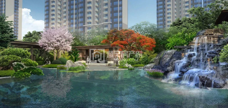 项目有约11万㎡新中式园林,取江南园林“前府后园”精髓,打造“一轴五进十景”景观组团,赋予居者超然享受。