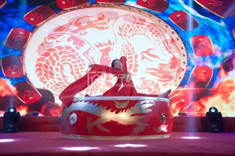舞者铿锵优美的鼓上舞舞姿在大鼓上跳跃翻腾