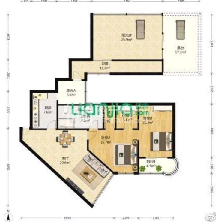 8、阳台最好与客厅相连,如果条件允许,阳台应大一些,能有两个就更好了。