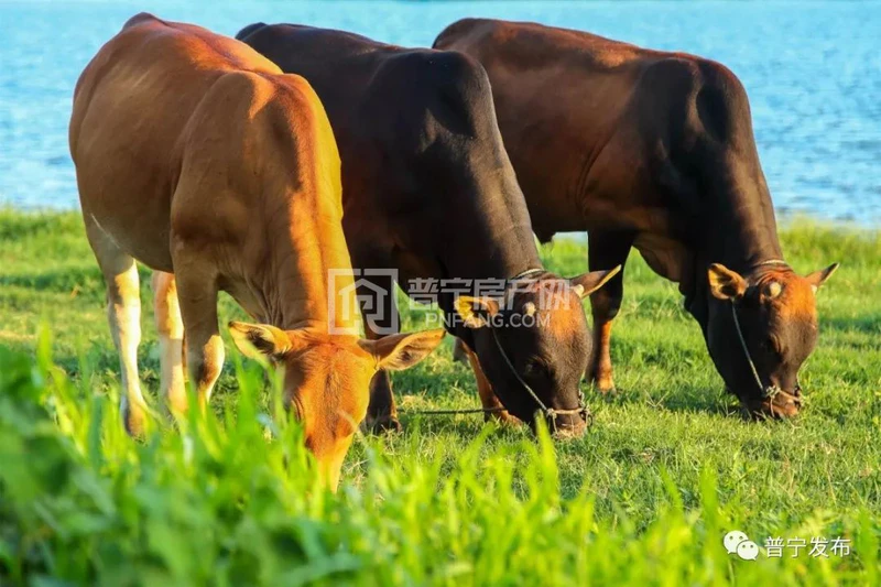 夕阳西下,飞鸟归;水浮光影,牛栖水;舐犊情深,带儿回。