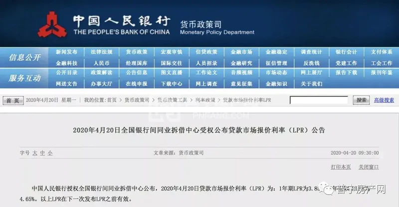 利好又来了,今天央行宣布,2020年4月20日贷款市场报价利率(LPR)为: