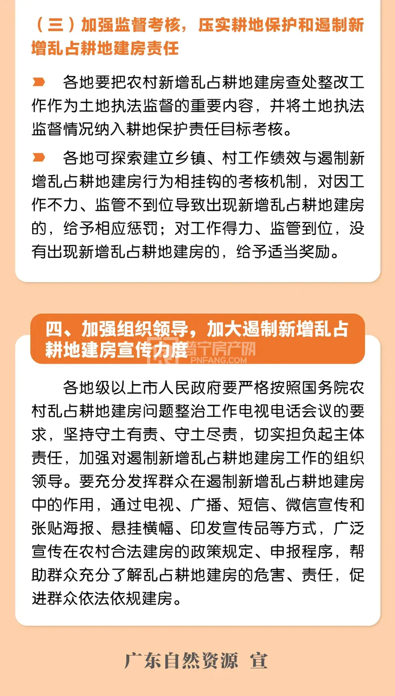近日,广东省自然资源厅联合省农业农村厅印发《关于疏堵结合坚决遏制农村新增乱占耕地建房行为的通知》,从“疏”和“堵”两方面明确了农村乱占耕地建房问题的解决思路和方法,明确各级人民政府是本行政区域土地管理的主要责任主体,同时强调要切实保障农民合理的住房需求,一定要解决农民因合理需求得不到满足而占用耕地违法建房的问题。《通知》自11月4日起实施,有效期3年。