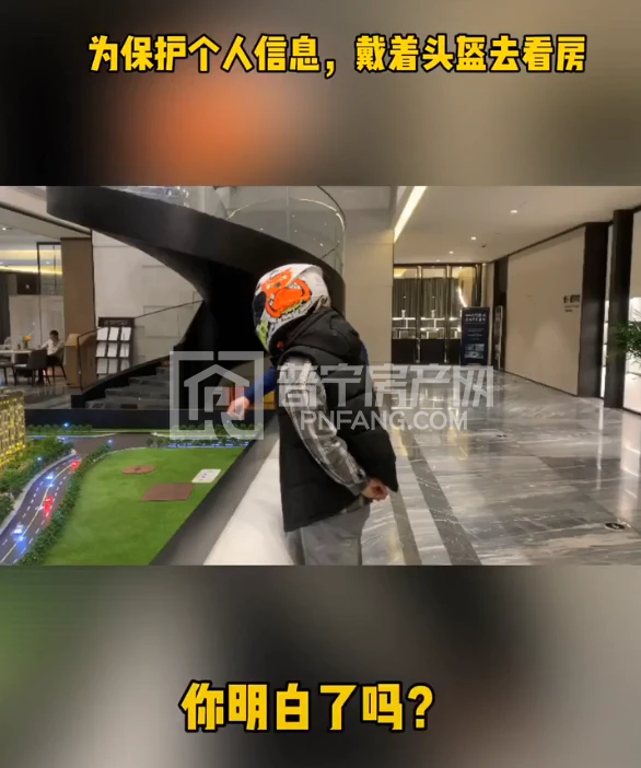 近日,一段“男子戴头盔看房”的视频在网上疯传,视频中的字幕显示:“为保护个人信息,戴着头盔去看房”。