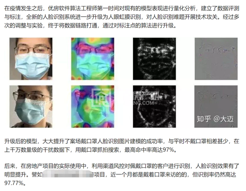在知乎平台上,据一个名为“优房售楼系统”的账号发布的名为《“口罩”也封印不了优房算法人脸识别》文章称: