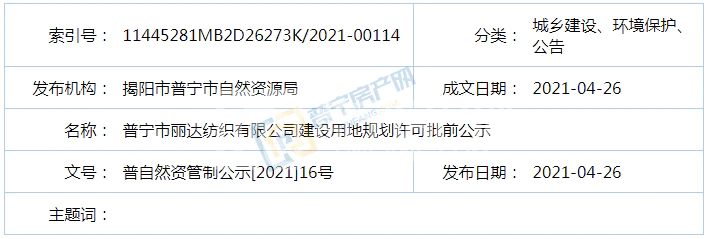 普宁市丽达纺织有限公司建设用地规划许可批前公示