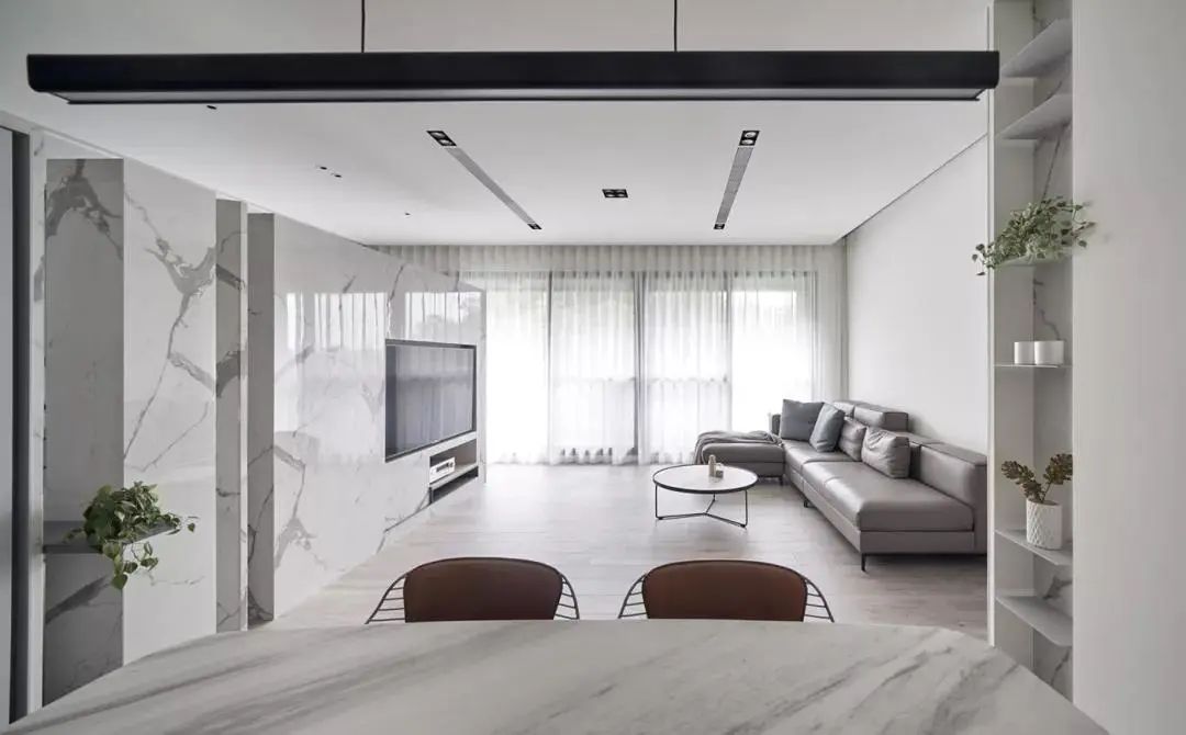 黑白灰的装修风格往往能打造出显得特别高级、干练的空间,让人身处于舒适、安定之中。