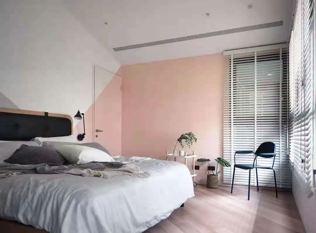 卧室的白色和粉色撞色墙面,柔和的粉色为卧室增添了浪漫的气息,彰显空间的精致感。