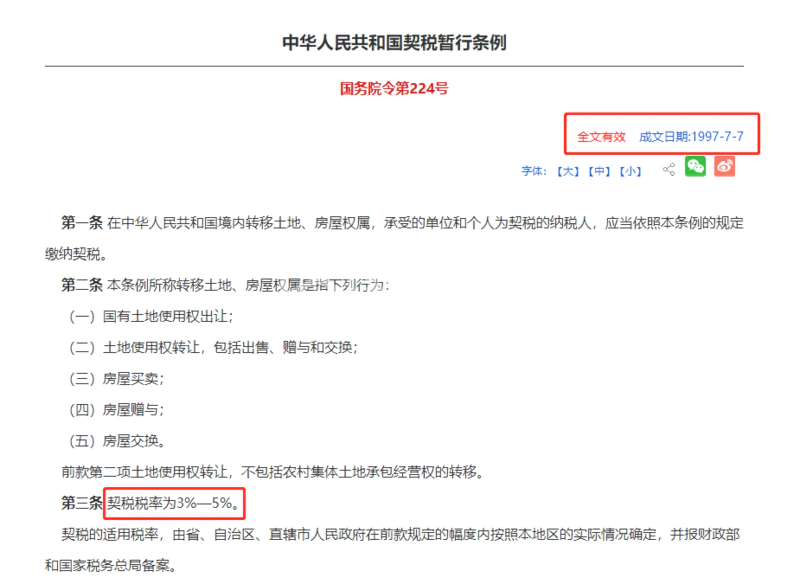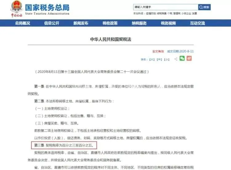 第三条显示契税税率为3%-5%,和最新的《契税法》并无差别。