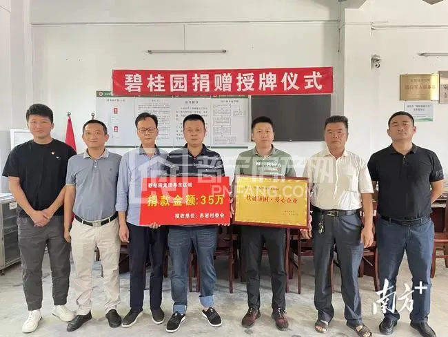随后,一行人员在赤岩村委会会议室举行捐赠授牌仪式,碧桂园粤东区域党支部书记濮玉兵代表碧桂园控股有限公司向赤岩村捐赠35万元。同时,赤岩村向碧桂园控股有限公司授予“扶贫济困·爱心企业”牌匾。