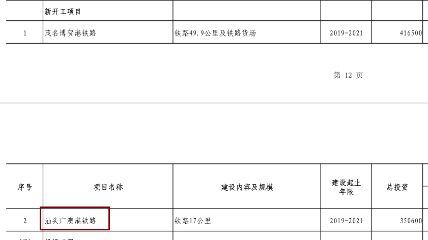 根据此前广东省发展改革委公布的《广东省2019年重点建设项目计划》的通知:汕头广澳港铁路计划今年动工。2019年计划投资10000万元,建设内容涉及征地拆迁、土建工程。