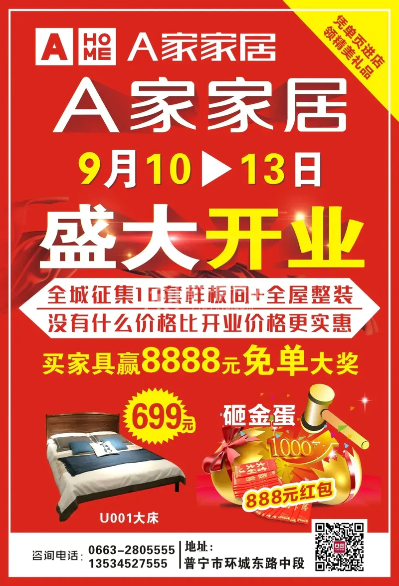 A家家居,国内绿色环保家具首选一线品牌,设计新颖,产品矩阵丰富。自2017年成立至今,普宁A家已为千家万户提供了健康、舒适、环保的各式家具产品,秉承匠心制造的理念,同时紧扣时代脉搏,普宁A家现全场重装升级!全新展厅隆重亮相,巨献新品惊艳入世,邀您共赏! A家家居一直以品质高,品类全,服务优,服务着千千万万家庭,来A家还可以定制属于你的爱家新天地。住新房,买A家;有A家,更爱家!