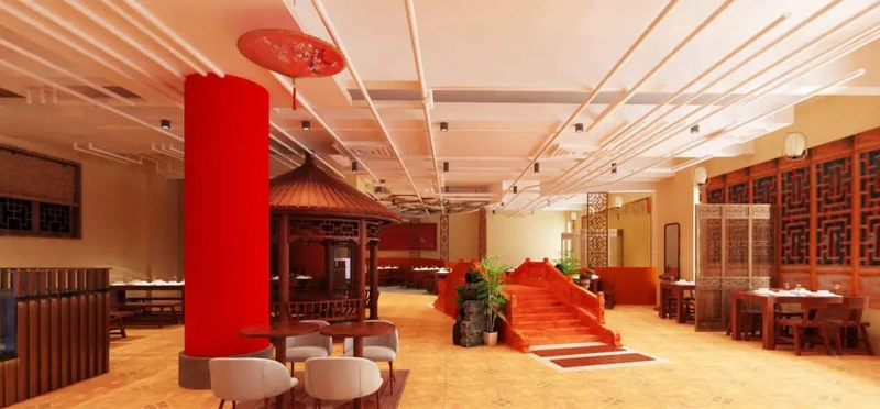 三月一十三古风糖水铺的空间设计极具中国古建筑的风韵,设计师运用雕花造型、仿古瓷砖、深灰石墙、中式画作、木质桌椅、油纸伞造型等,从各个层面展示出新中式的韵味,冷暖色对比张弛有度。将中式的古色古香与潮流时尚紧密结合,既具备中式风格的雅致大气,又能追随社会的潮流。