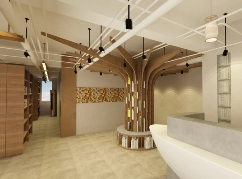盛世华府活动中心的设计之初是为了给业主搭建一个放松、休闲、舒适的场所,营造和谐邻里关系。本设计用简约设计的手法,以及亲和的材料、颜色、灯光来创造空间。活动中心的功能区主要包括大厅、展览室、阅读区、休息区、少儿阅读区、办公区等。