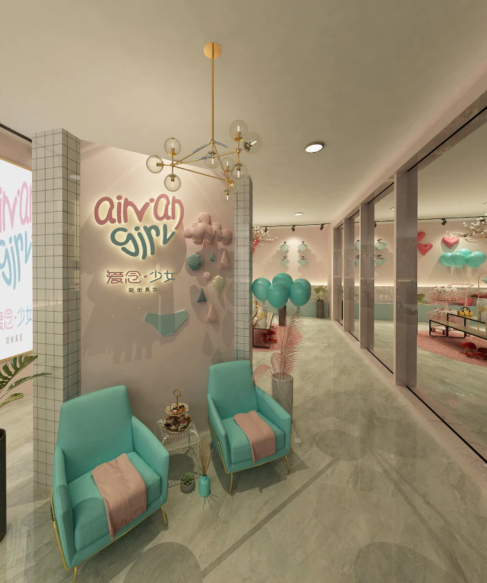 爱念少女展厅是爱念品牌旗下的少女系列内裤展厅,在空间设计中彼此设计将高级感的马卡龙玩出了新玩法。