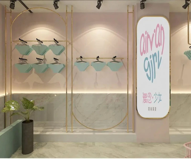 马卡龙在味蕾里迸发的感觉是甜蜜,在视觉上给人的第一印象,是明亮。色彩运用在空间设计里,活泼的氛围感呈现出少女内裤爱念品牌活力、青春的格调。