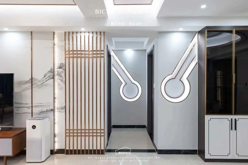 盛世华府新中式样品房在立足于传统的基础上,又巧妙地融合了现代特色。在选材上则大胆地加入一些现代材质,如金属、玻璃、大理石等,让空间在保留古典美学的基础上,又进行时髦的现代演绎,使空间质感变得更加丰富。