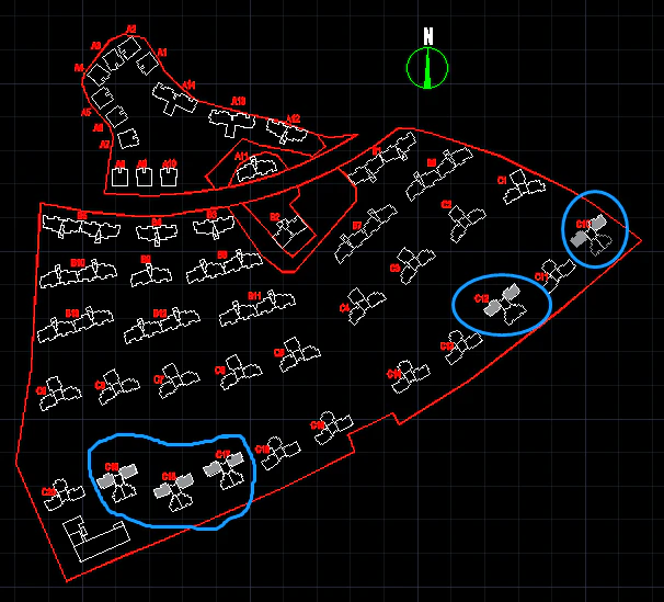 L2户型分布在C10、C12、C17、C18、C19栋的03和04户。