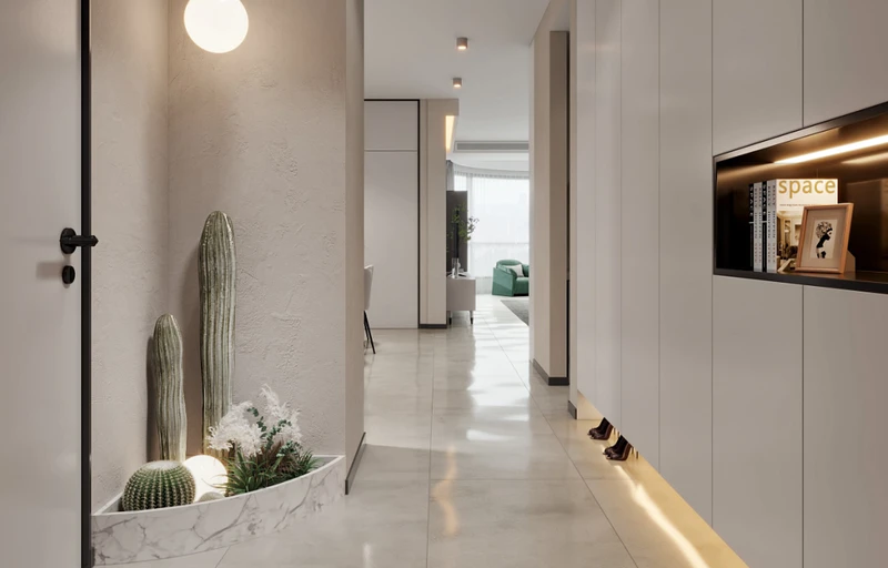 玄关是我们每天出门衣着整理,回家的卸尘区,需要考虑功能性和美观性。