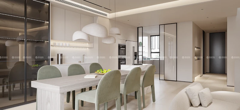 做客厅阳台一体化,增强功能连续性和室内开放感,不仅空间功能得到延伸,采光、通风也大大优化了,室内光线变得更加通透柔和。