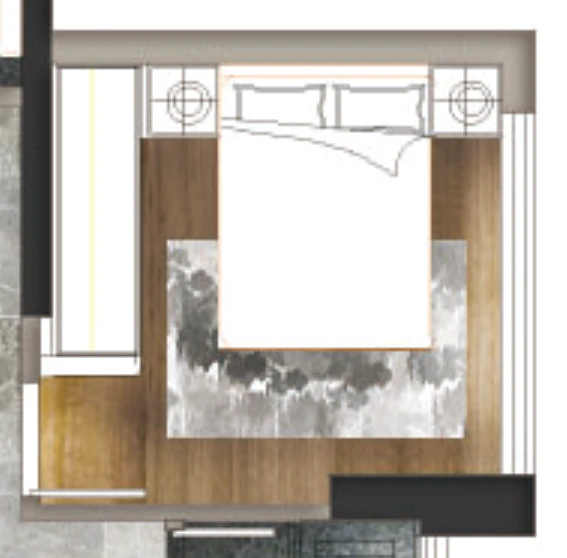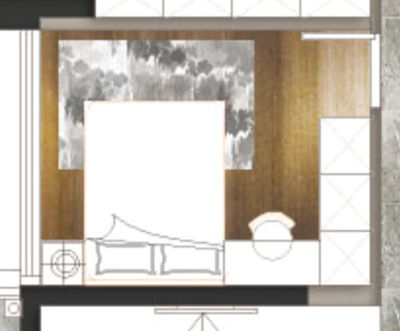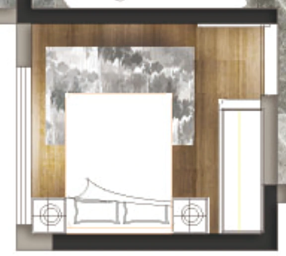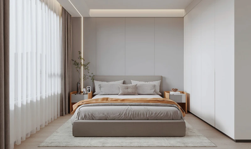 靠墙做柜,也增加了主卧的隔音功能。