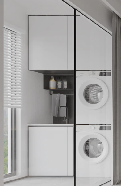 生活阳台做洗衣机洗衣盆一体,阳台面积足够满足日常晾晒需求。