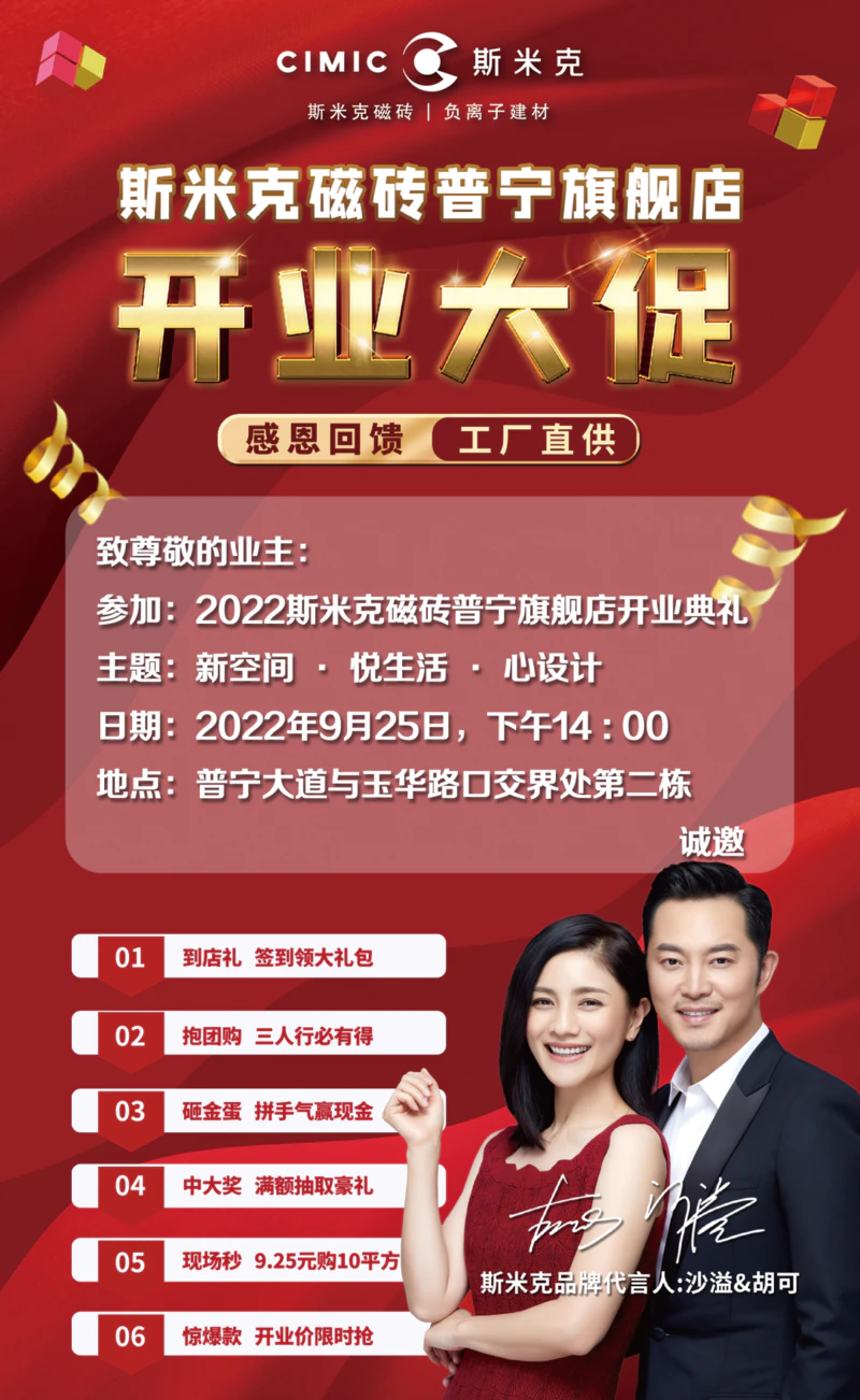 开业盛典上,上海斯米克磁砖营销总经理陈宁先生对普宁的市场充满了期待和信心,他表示,斯米克磁砖的进驻,带给消费者的不仅是产品的多元选择,更是一种潮流生活方式的引入。承诺不会辜负大家所望,将始终以最优质的产品和高标准的服务为普宁人们打造高端舒适的家居生活空间。