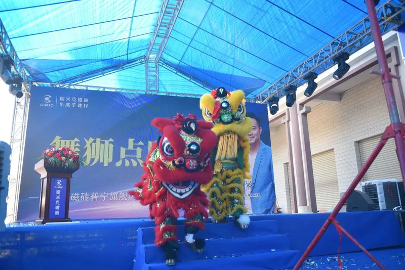 醒狮采青,贺堂,寓意斯米克磁砖·普宁旗舰店生意青云直上,大展宏图,蒸蒸日上!