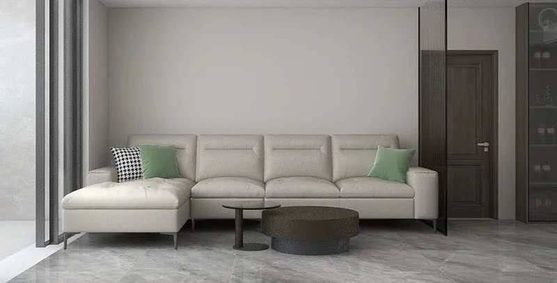 一套真皮转角沙发,提升了客厅的质感,