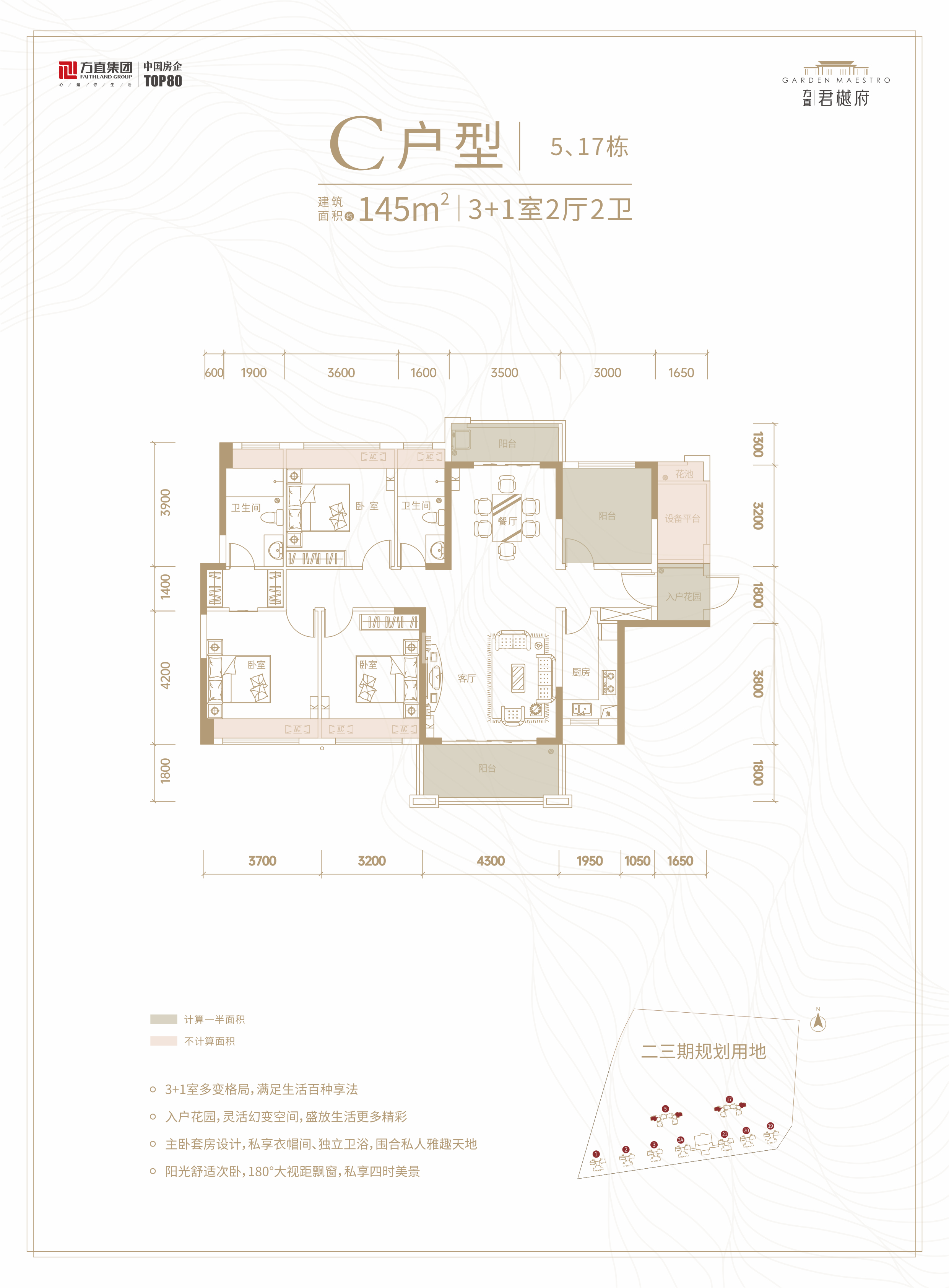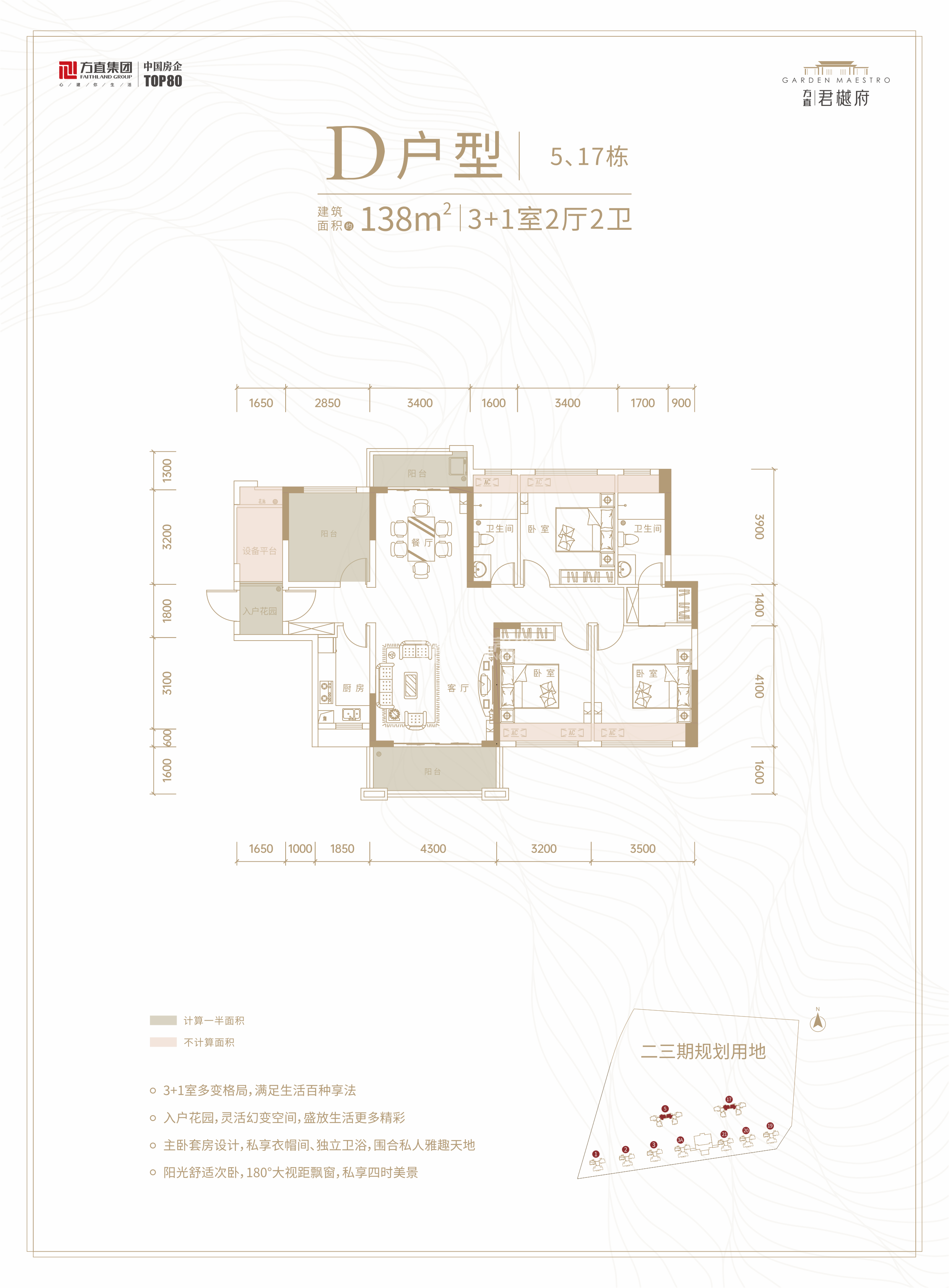 项目总占地面积约13万㎡(约200亩),是建筑规模约为60万m的大规模社区,其中住宅48万㎡,分三期开发,一期规划有9栋32层的高层建筑,共1240户,容积率约3.86,是普宁低密度高端小区的典范!