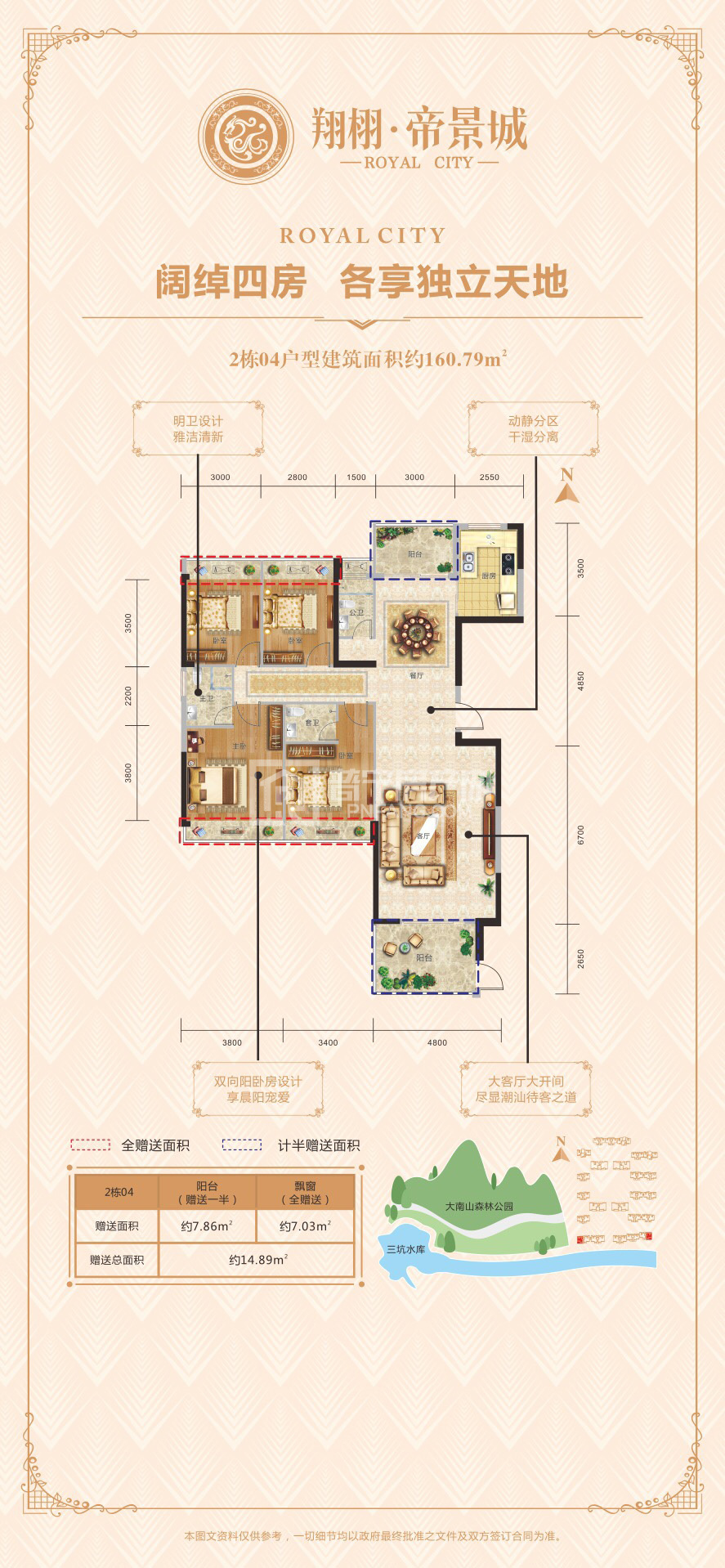 拥有超3000平方人工湖景,普宁独创双大堂设计,百米超宽楼间距,营造广角视野,户型南北通透,超高使用率,超大赠送面积,布局合理,动静分区,小区还配备了2层地下停车场,全方位实施高品质物业管理,亲情打造普宁住宅标杆。