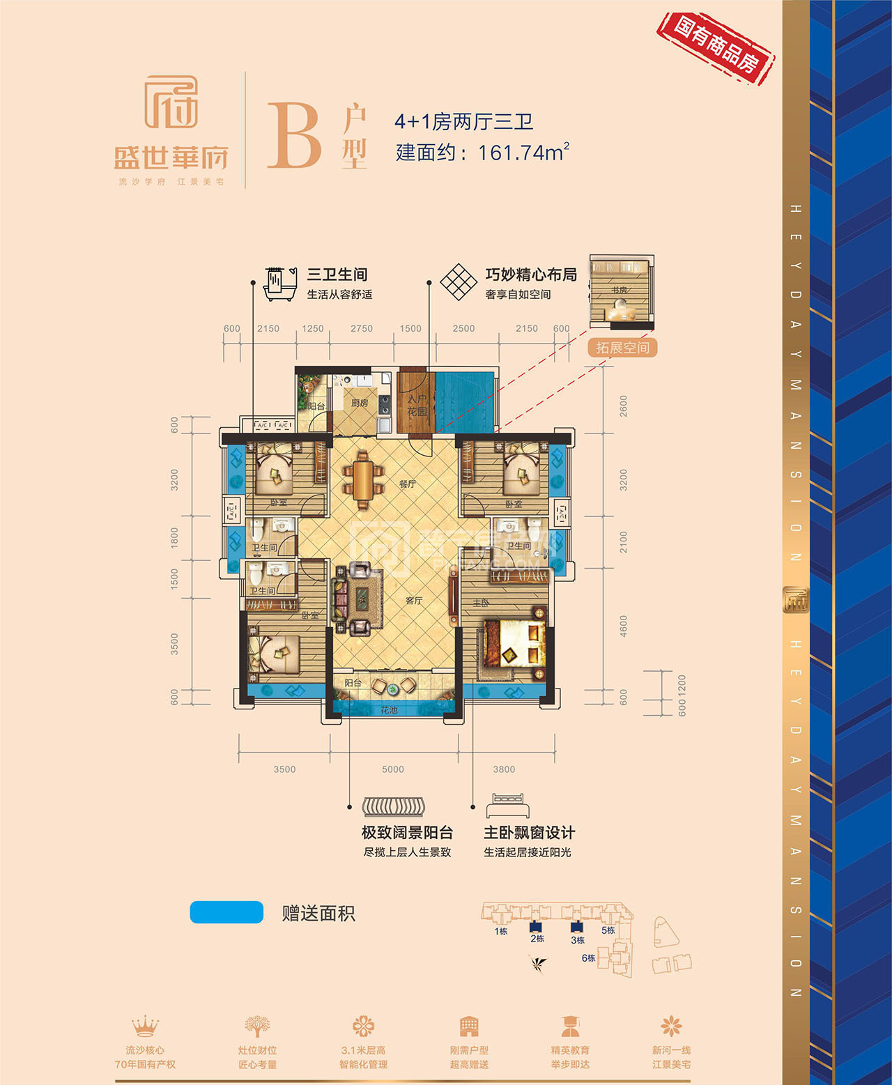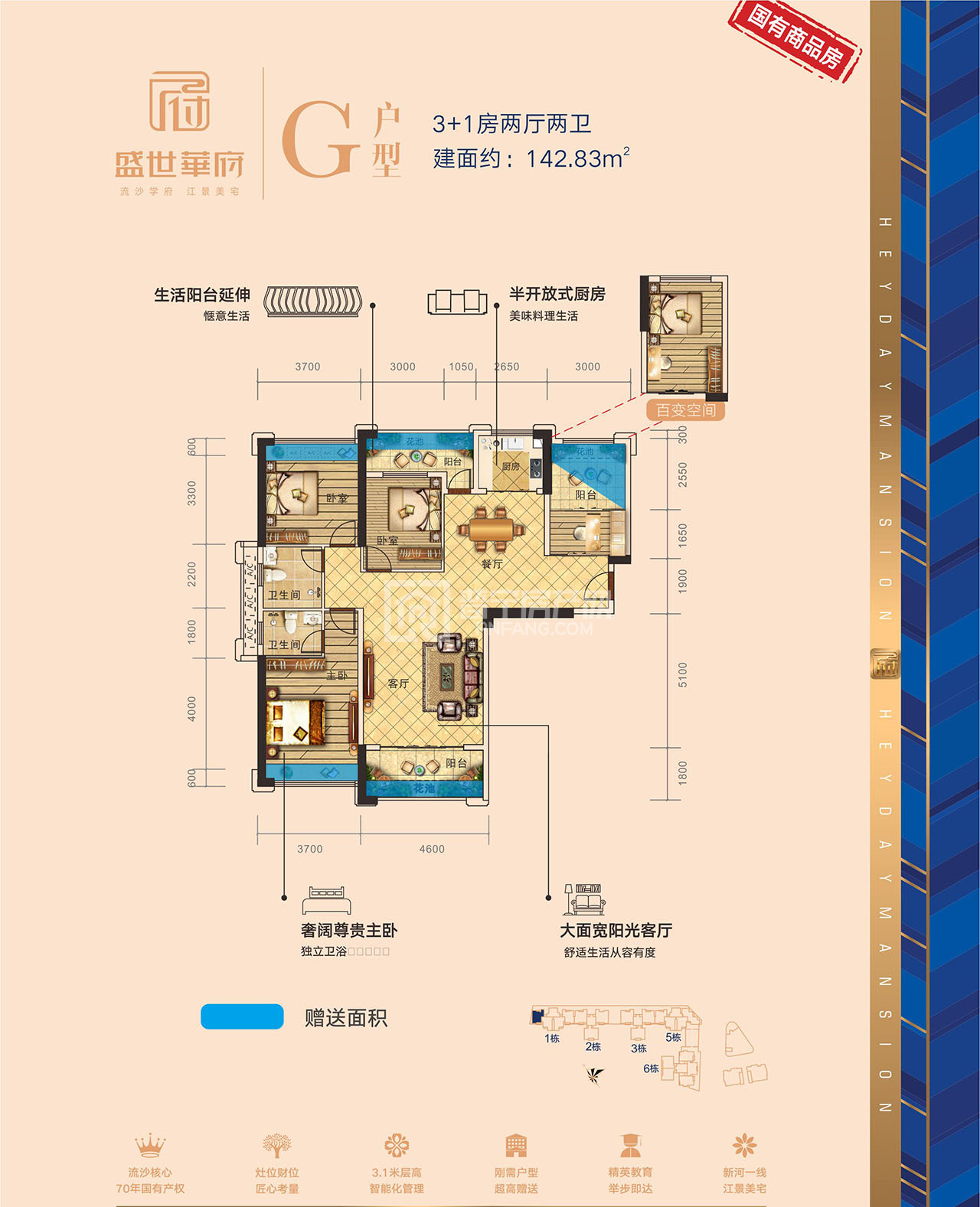 项目总占地约1.6万㎡,总建筑面积约10万平米。整个项目规划为7栋精工住宅。在产品打造上,本着对产品精雕细琢,恪守匠心的工匠精神,在户型设计上,建筑面积面积约103-162平米,布局为三至四房两厅两卫户型,能够充分满足现代精英家庭对户型的需求。